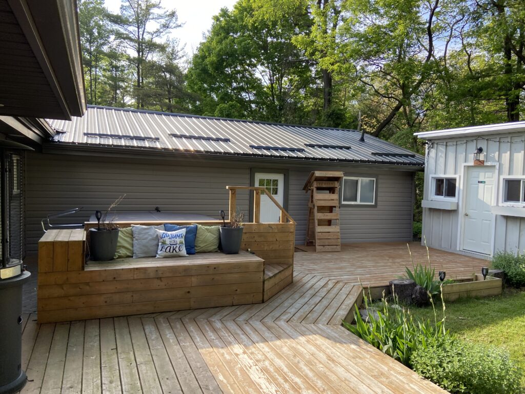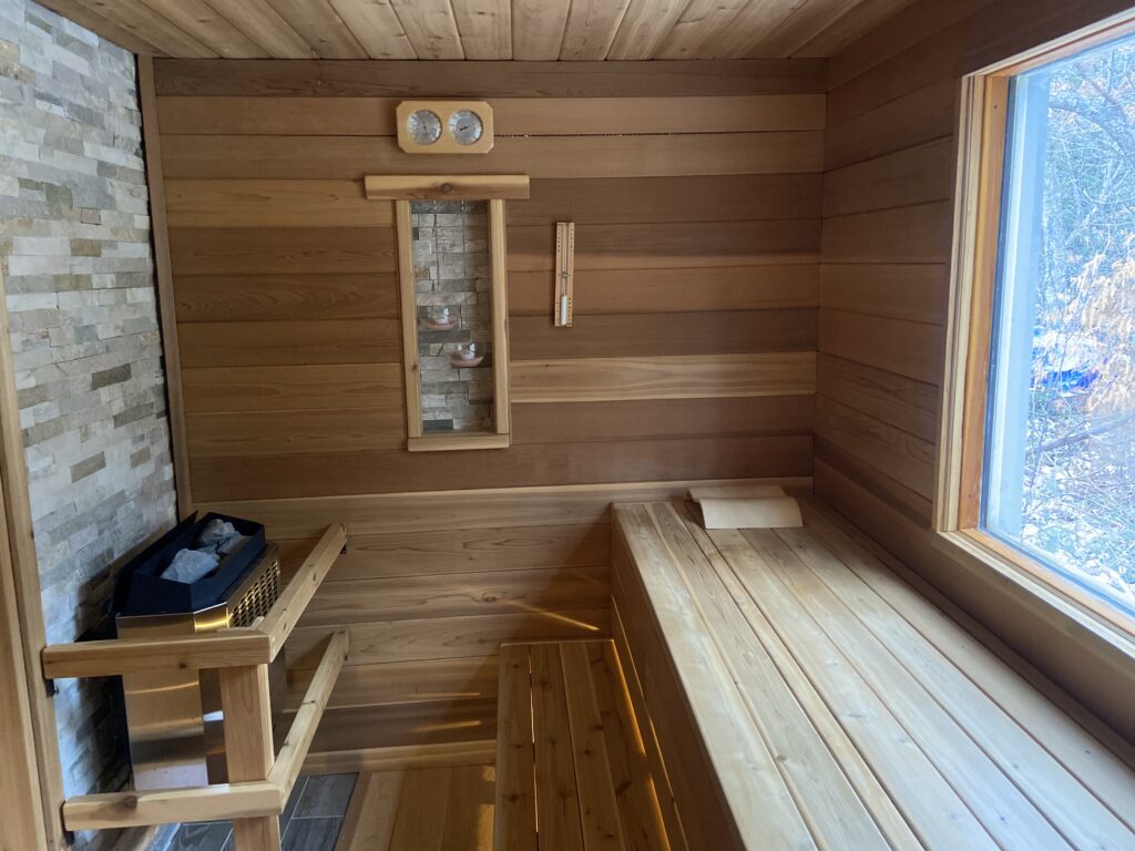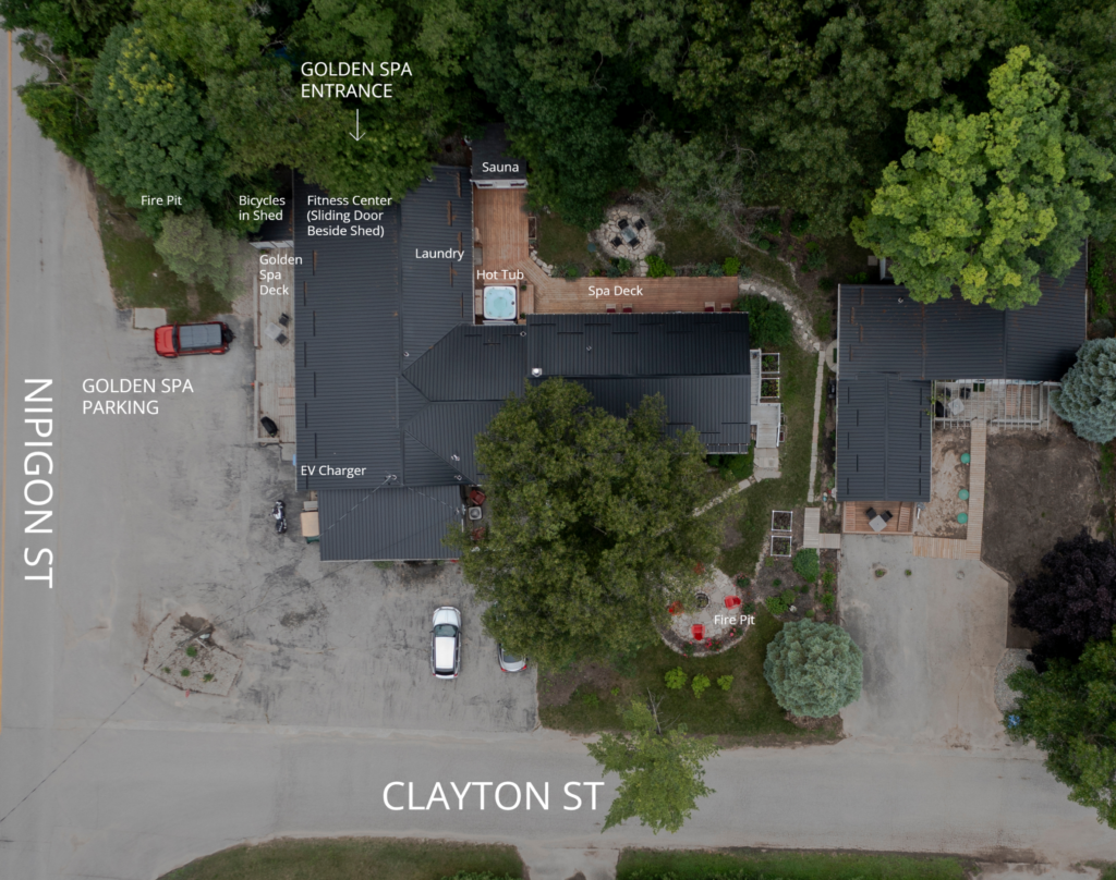 Hot Tub & Sauna are shared between the Golden Spa Suite and Romantic Studio Cottage, open daily 10 am to 12 am. Reservations are made after arrival using the magnetic reservation board on the sauna door.